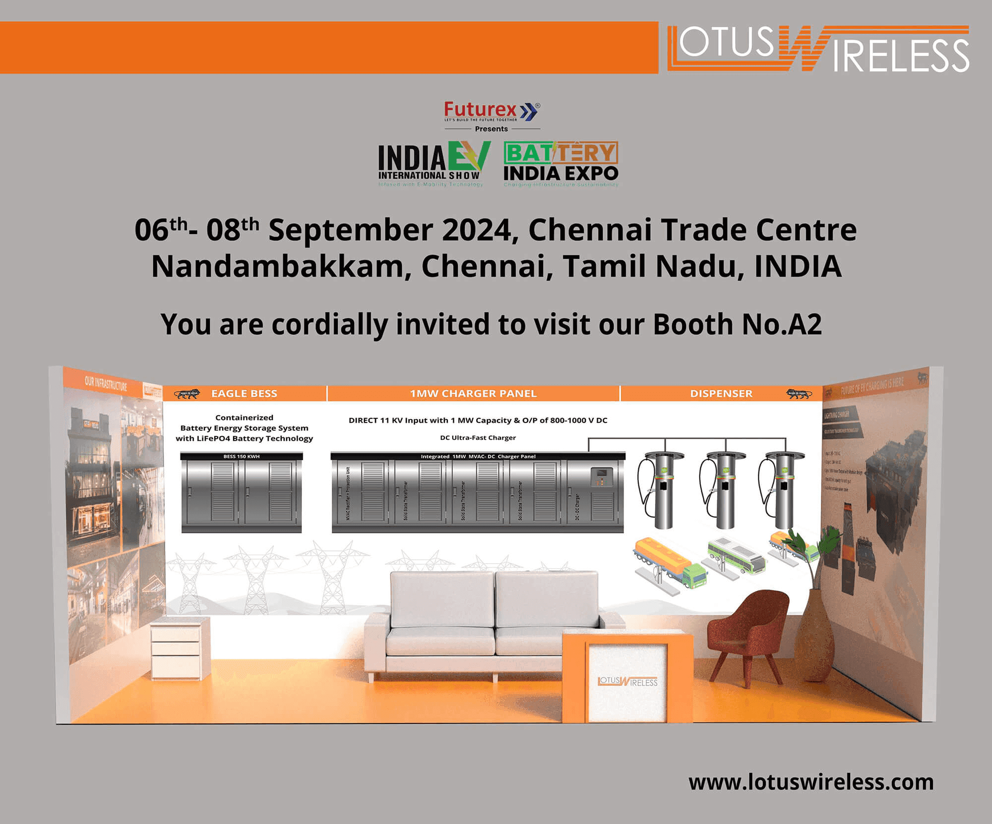 It is with immense pleasure that we invite you to visit India International EV expo to be held from 6th September to 8th September 2024 at Chennai Trade Centre, Nandambakkam, Tamil Nadu, India